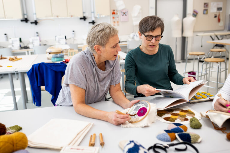 Aikuisten taiteen perusopetus, Terijoenkatu 2, 1. kerroksessa ja aulassa / Huovutustöitä, Terijoenkatu 2, pääaulan kahdella seinällä. / Piirustuksia, taito- ja taideaineiden Arthouse-tila, 2. kerroksen seinillä /Taikan teoksia, taito- ja taideaineiden Arthouse-tila, 3. kerroksen aulassa