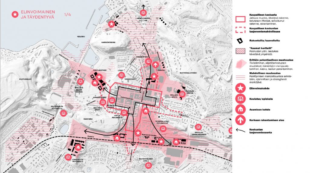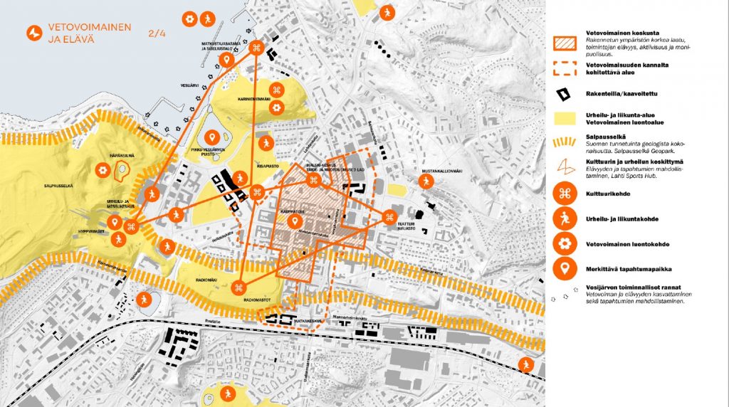 Vetovoimainen keskusta houkuttelee. Keskustassa näkyvät kaikki Lahden vetovoimatekijät: luonto, vihreys ja vesi, tapahtumat ja kulttuuri sekä urheilu ja liikunta. Ranta-Kartanon ja Satamaraitin sekä urheilukeskuksen uudistukset kasvattavat keskustaa järven suuntaan. Uutta vetovoimaa tuovat myös taide- ja muotoilumuseo, vesiliikuntakeskus ja Salpausselän Geopark-hanke . Lahti on valtakunnallisesti tunnettu, omaleimainen urheilu-, kulttuuri- ja tapahtumakaupunki, kauppatori tapahtumien keskipisteenä.
