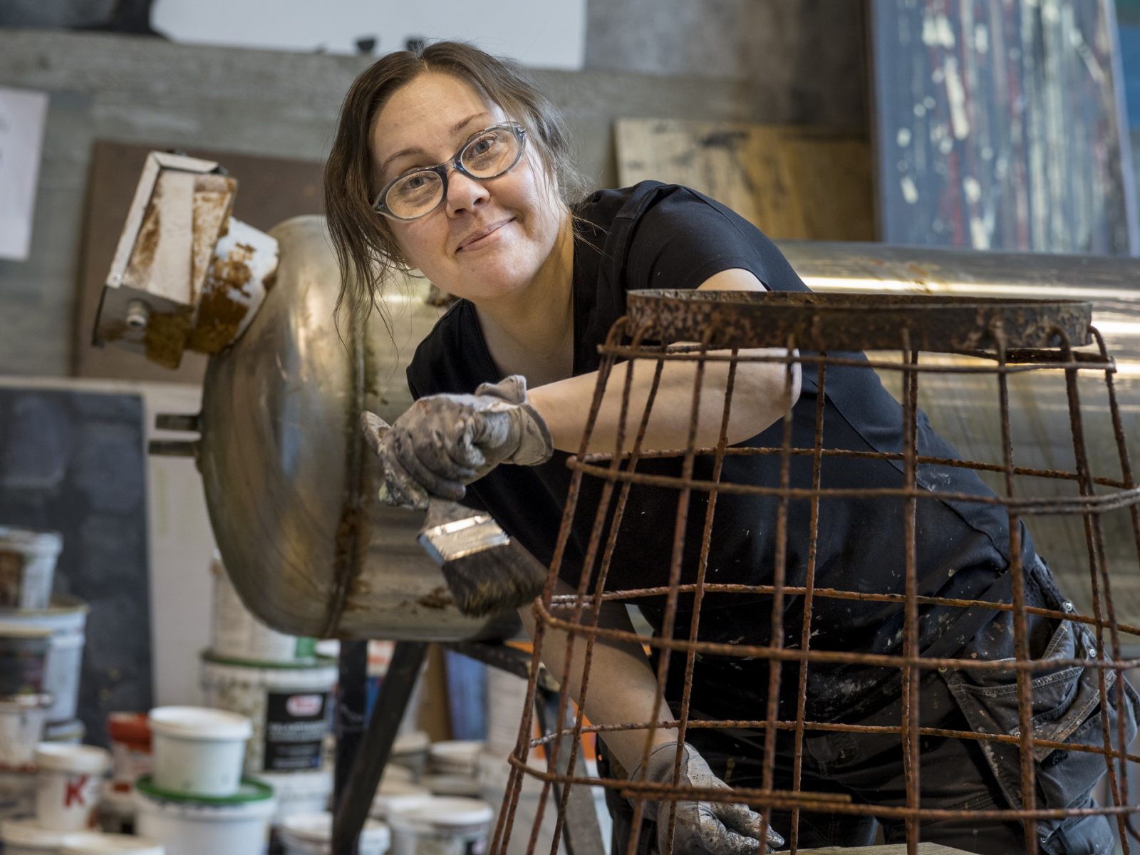 – Voin jättää lavasteita rauhassa kuivumaan ja tehdä välillä muita töitä. Alkuvuodesta suunittelimme, että pitäisi vuokrata lisätilaa fondin maalaamiseen, mutta nyt onkin tilaa.