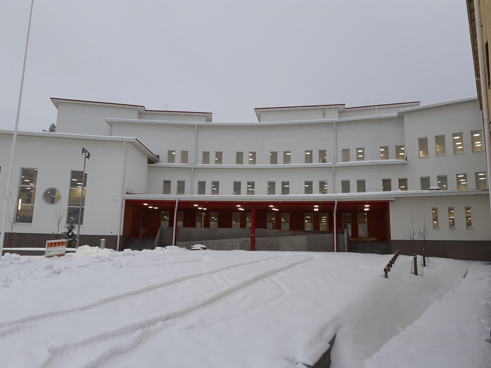 Toisessa kerroksessa punainen väri korostaa luovuutta, sillä tiloissa vahvistetaan kädentaitoja: käsityötä, kuvataidetta ja kotitaloutta. Käsityön pehmeiden materiaalien työstökoneet ja laitteet asennetaan kevytrakenteisina vasta seuraavassa vaiheessa – luonnonvalo pääsee ikkunoiden läpi ompelukoneiden työpisteille.