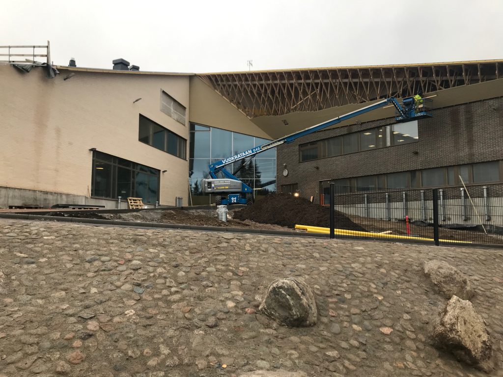 Osa tiloista on jo loppusiivottu. Oppimisympäristöjen kalusteiden suunnittelu on ihan loppuvaiheessa, ja huhtikuussa taloa päästään sisustamaan. Blogissa pääsemme muutamin kuvin kurkkaamaan Launeen monitoimitalo Lähteen piha-alueelle ja sisätiloihinkin.