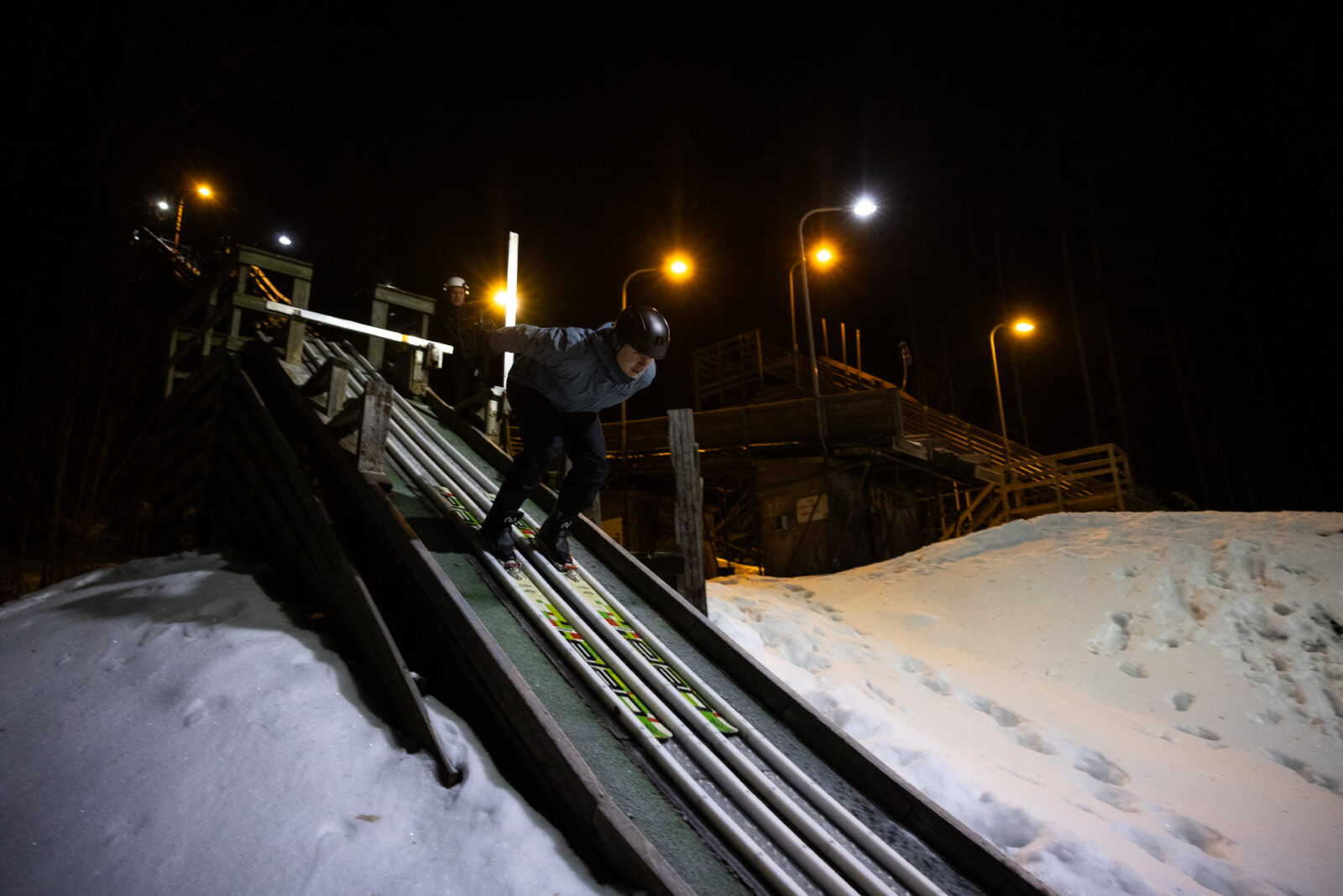 Ski jumping practice takes place in the Karpalo area on Monday evenings. The four ski jumping hills of different sizes enable training for beginners, and everyone can build up their skills at their own pace.