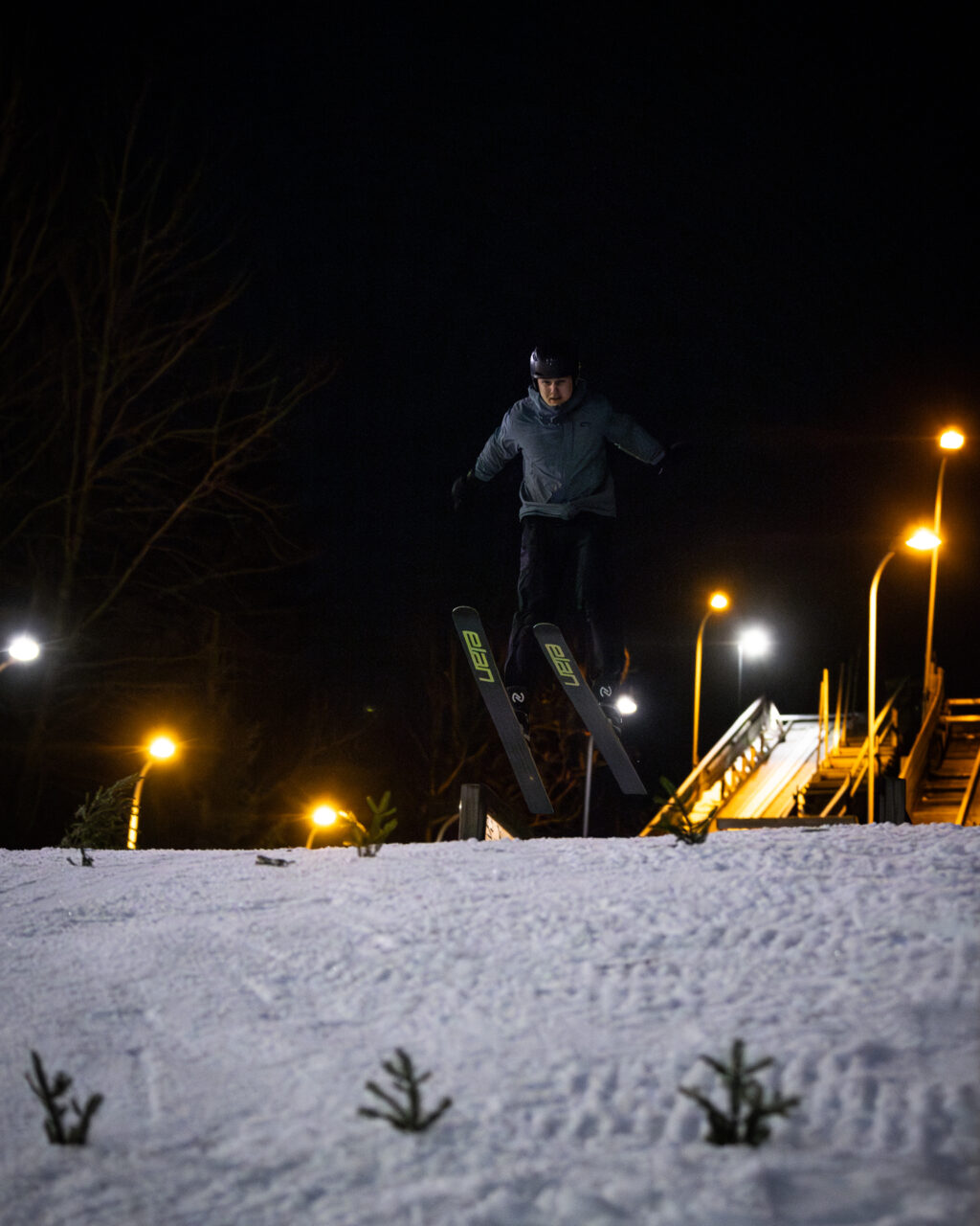Ski jumping practice takes place in the Karpalo area on Monday evenings. The four ski jumping hills of different sizes enable training for beginners, and everyone can build up their skills at their own pace.