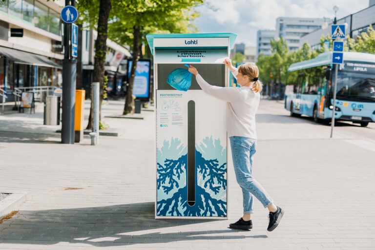 Kokeilimme ensimmäisenä maailmassa tekstiilipanttia. Pop up -keräysastian volyymi viisinkertaistui muihin keräyspisteisiin verrattuna. Tutustu panttikokeiluun ja muihin ympäristökaupungin tekoihin.
