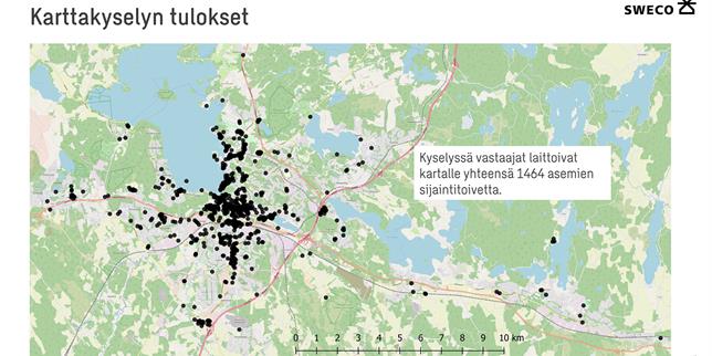 Asukaskyselyssä kerättiin mielipiteitä järjestelmän ominaisuuksista, sen tarpeellisuudesta ja lisäksi karttatietoa kaupunkipyörien asemien sijainnista. Kysely tehtiin Maptionnaire-työkalulla.