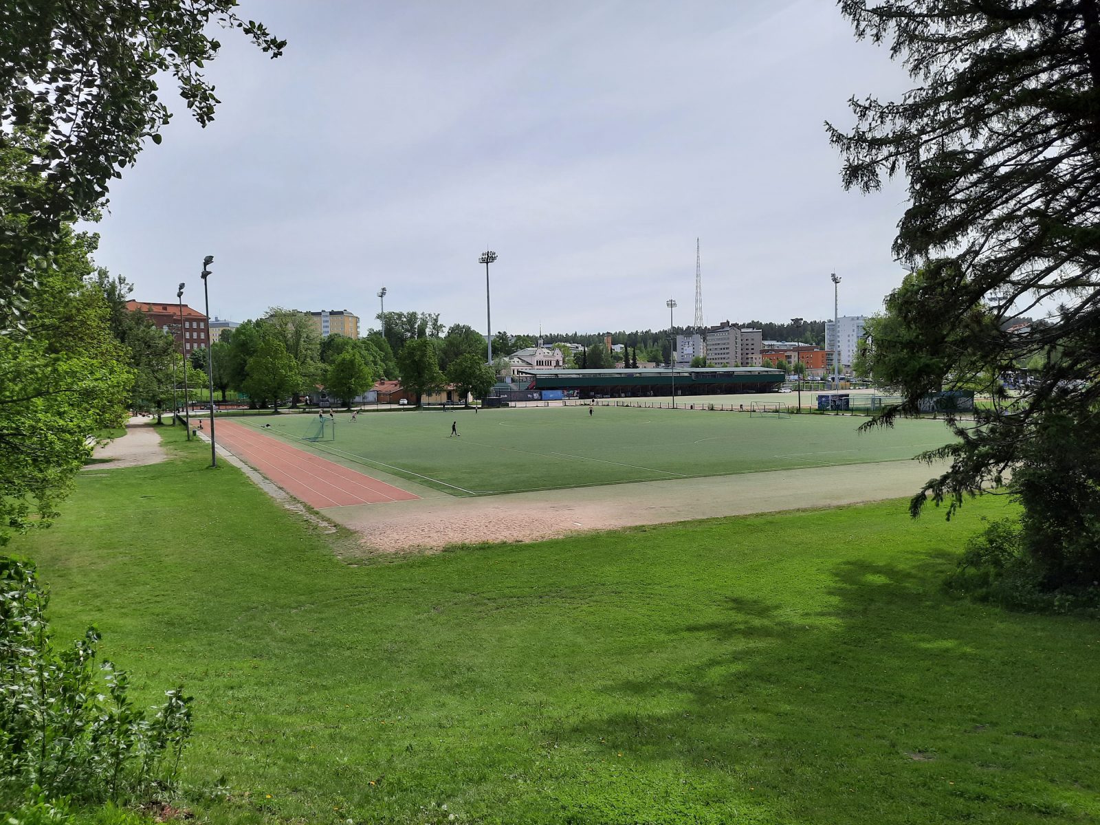 Kisapuistossa on kaksi tekonurmea, saneerauksen kohteena on pohjoisempi kenttä eli harjoituskenttä. Harjoituskenttä on osoitettu ilmakuvassa keltaisella rajauksella.