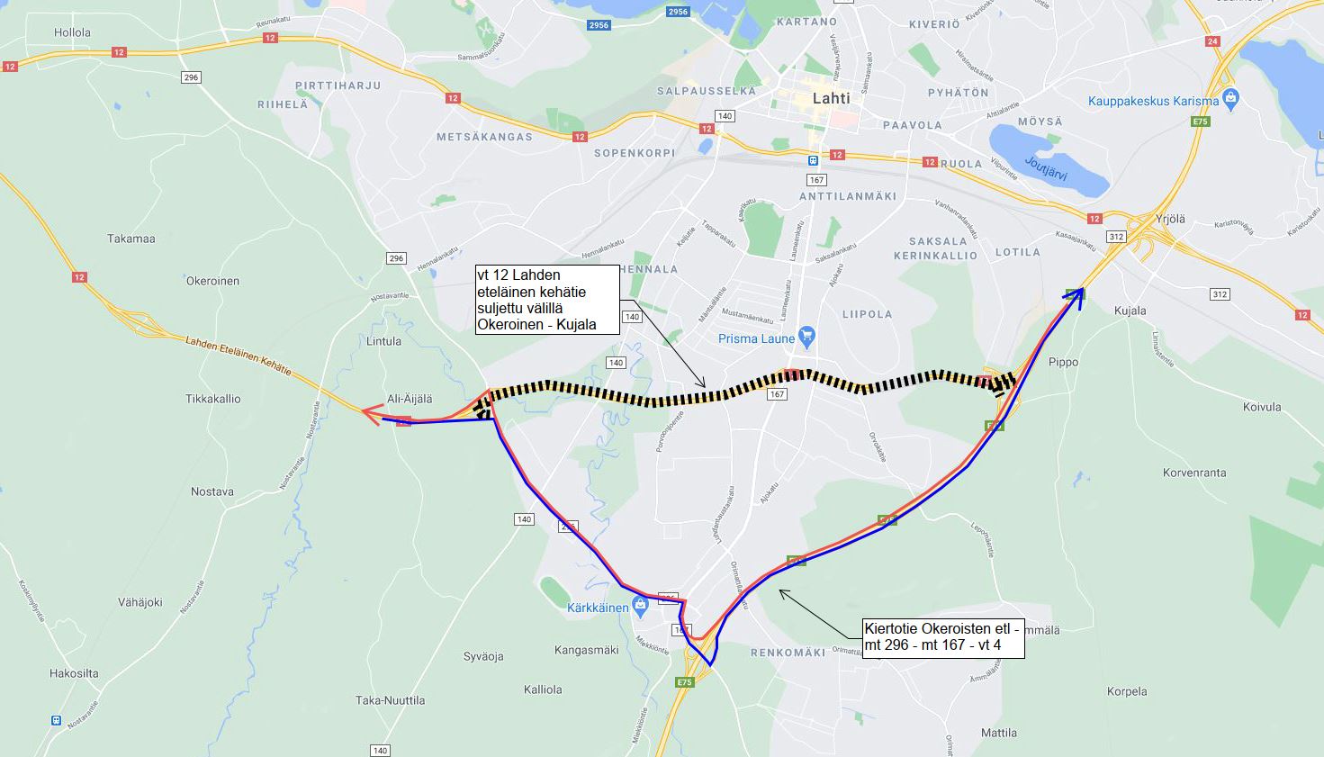 Lahden eteläisen kehätien (vt 12) Patomäen ja Liipolan tunneleissa toteutetaan yösulut torstain ja perjantain, perjantain ja lauantain sekä töiden jatkuessa lauantain ja sunnuntain välisinä öinä klo 21.00–04.00 välisen ajan.