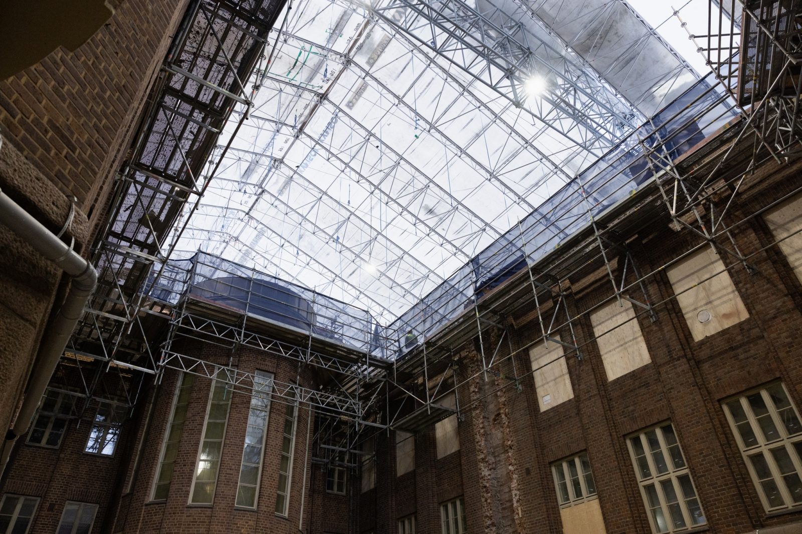 Parhaillaan kerroksissa toteutetaan purkujen jälkeisiä tarkastuksia, joissa varmistetaan vanhojen rakenteiden puhtaustaso ennen uudelleenrakentamisvaihetta.