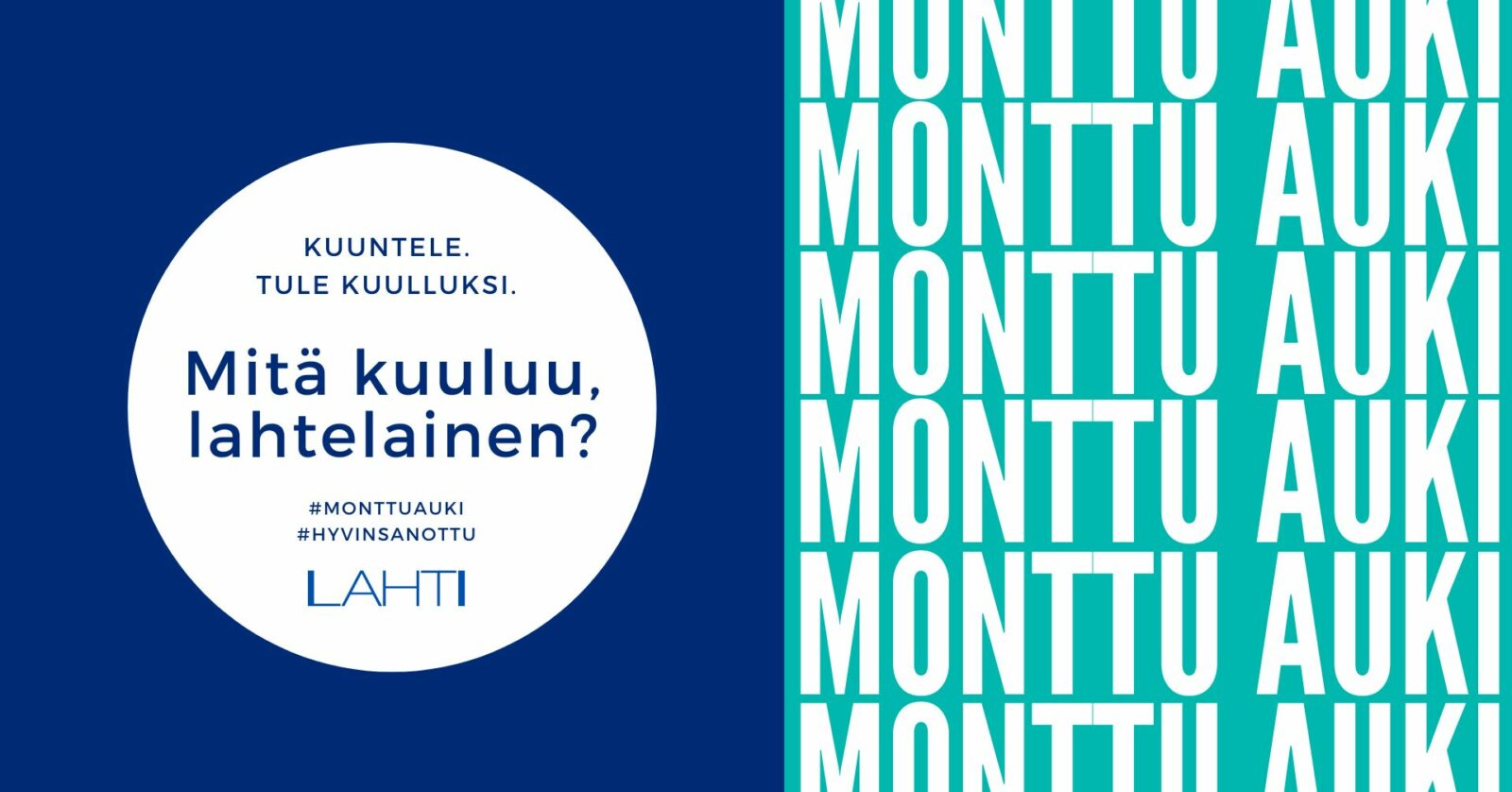 Onnistunut vuoropuhelu tarvitsee juuri sinua. Monttu auki on lahtelaisten yhteinen keskustelu. Osallistujat kokoontuvat saman pöydän ääreen keskustelemaan luottamuksellisesti suosittua Erätauko -menetelmää hyödyntäen. Jokaista keskustelua ohjaa Erätauko-menetelmän osaava fasilitaattori.