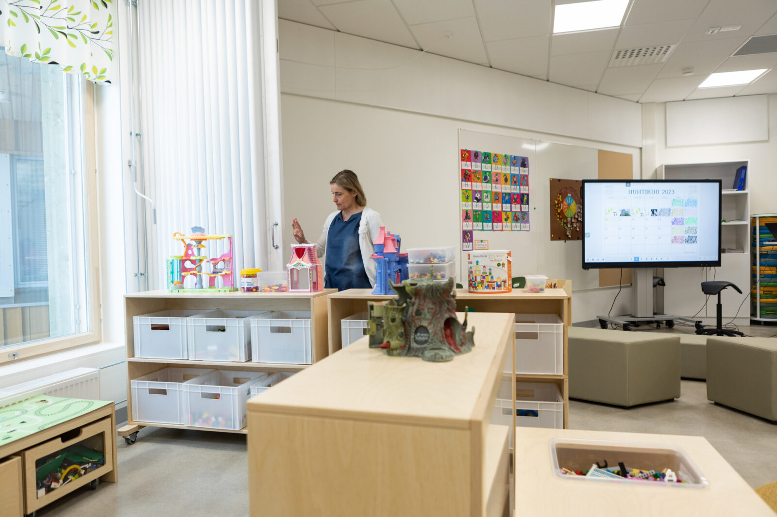 Monitoimitalossa toimii koulu, päiväkoti ja kirjasto
