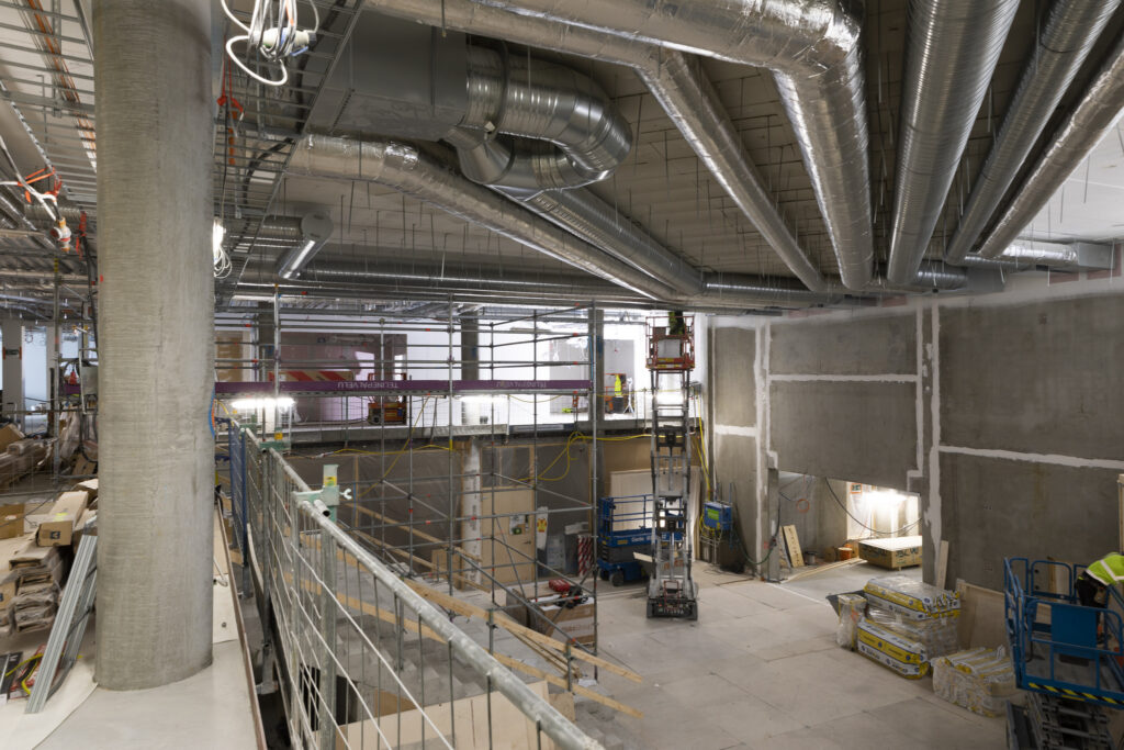Renkomäen monitoimitalon sydänosassa kohoavat suuret portaat. Niitä tutkailevat monitoimitalon elinkaarihankkeen toteuttamisesta vastaavat avainhenkilöt: Skanskan suunnittelujohtaja Jukka-Pekka Päivinen ja Caverionin liiketoimintapäällikkö Jani Orava. Portaat symboloivat lapsen kasvua ja oppimista mutta kertovat vertauskuvallisesti jotain olennaista myös kahden insinöörin työurasta rakennusalalla ja alan kehityksestä.