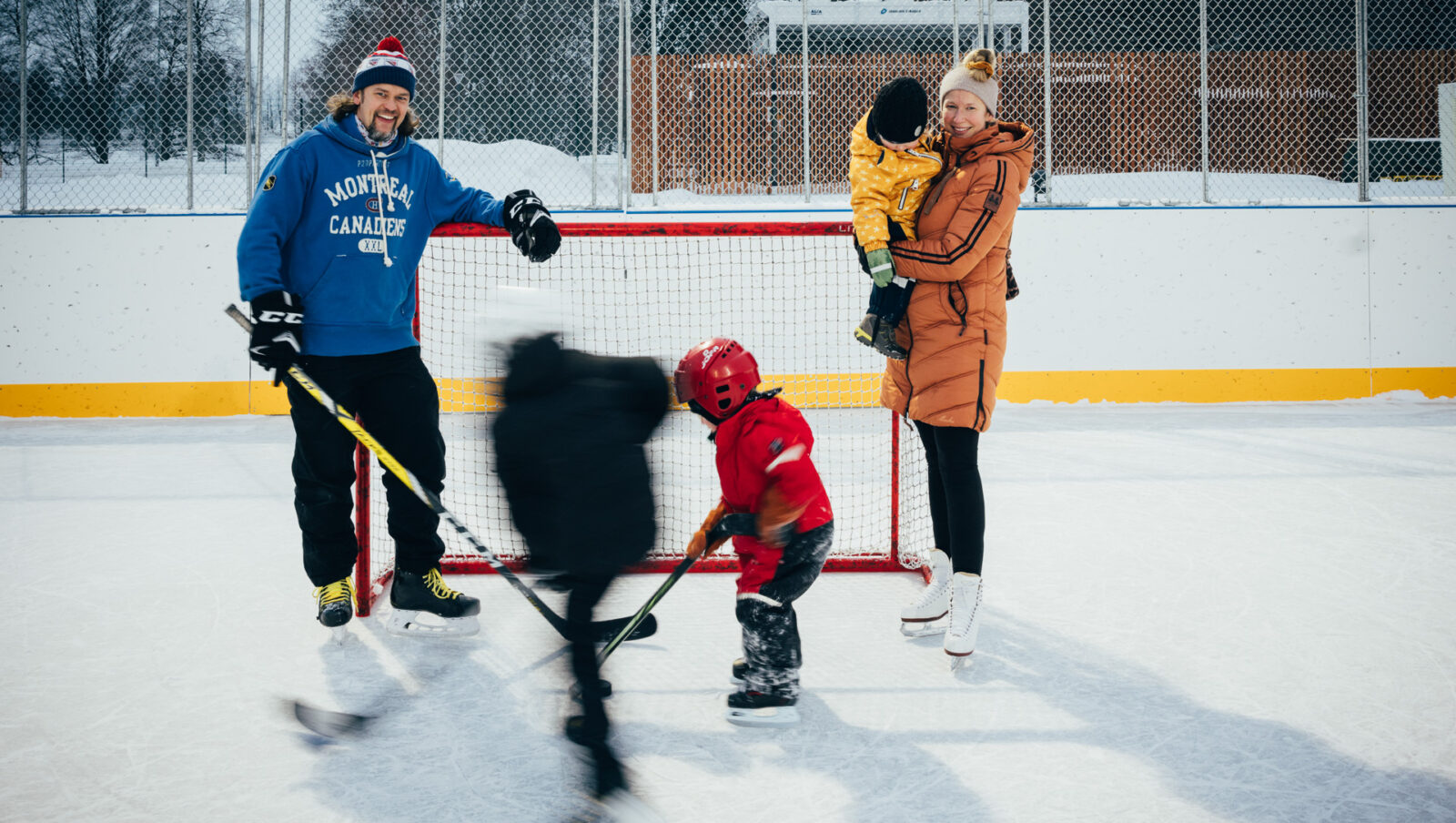 Koska koko perhe harrastaa liikuntaa ja urheilua, kalenterit täyttyvät treeneistä. Pojat kulkevat useimmiten vanhempien kanssa Pelicansin ja Reippaan harjoituksissa tai muuten vain luistelemassa Kisapuistossa.