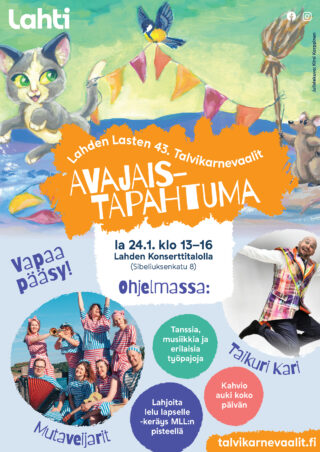 Lahden Lasten Talvikarnevaalit järjestetään 24.1.-15.2.2026 teemalla Hissun kissun vaapula vissun. Karnevaalit ovat jälleen viikkoa pidemmät runsaan ohjelmatarjonnan vuoksi.